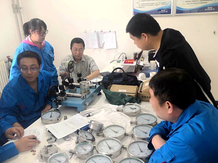 “你看,你這個地方?jīng)]有纏生料帶,因為壓力表在使用過程中螺紋有細(xì)小的磨損,裝上之后并沒有嚴(yán)格密合,因此會漏氣,所以你加半天都從這漏掉了”,李薇靜這才恍然大悟,便拆下壓力表纏上生料帶,壓力表指針才根據(jù)加壓慢慢擺動。 站在一旁的李耀華看的也躍躍欲試,說:“讓我也操作一下吧”,安裝壓力表,轉(zhuǎn)動手輪、微調(diào),每到一個測量刻度讀數(shù),做好筆記,填寫校驗合格證,粘貼合格證,一步一步,嚴(yán)格按照步驟操作,做的游刃有余,很快20多塊壓力表已經(jīng)校好。“哎呀”,突然一聲大叫,打斷了大家,只見連接管處水呲一下全噴了出來,“怎么回事,怎么回事”,李耀華著急地問道,“沒關(guān)系,是你校完之后壓力沒有完全泄掉,壓力導(dǎo)致水呲出來了”說著老師完全打開了泄壓手輪。 “一個看似簡單的壓力表校驗并不那么容易啊,有很多需要注意的細(xì)節(jié)”,任亮亮感慨道。通過培訓(xùn),大家的業(yè)務(wù)水平有了提升,以后工作中也更有責(zé)任心,設(shè)備檢修校驗中不放過每個細(xì)節(jié),為機組正常運行做好維護工作。