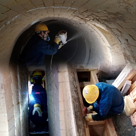 針對該問題,車間組織班組長、技術骨干討論研究,最終確定采用火道內襯縫隙加塞耐火巖棉,表面噴涂掛漿的維護方案。維護過程中,受空間限制,作業人員需半蹲側身進入端頭火道入口進行作業,在完成安全技術兩交底后,維護人員齊裝上陣,兩兩一組,累了就互換角色,輪番交替進行。為了保證維護質量,大家還利用休息之余,交流經驗方法,探索出先將膠泥涂抹1毫米,再噴涂兩次后效果會更佳的修復方法。經過護爐人員的共同努力,僅用七天時間就完成了聯通火道和一廠房1#8#爐室邊火道側墻的維護工作。調溫工連續七天對升溫曲線數據進行記錄跟蹤,成效顯著,火道負壓由維修前的147Pa上升到了194Pa