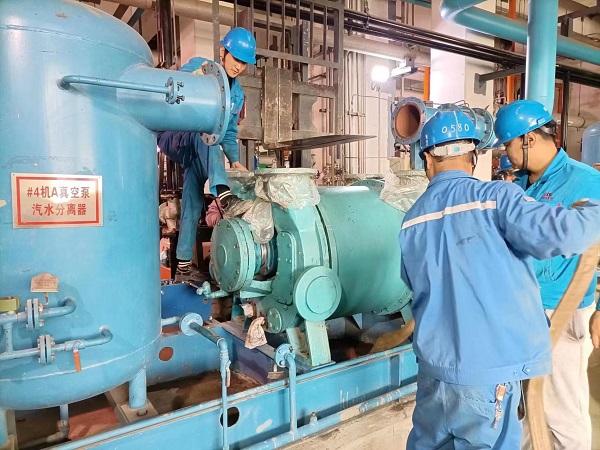 錦陽電廠#2機組A級檢修正在緊張進行中,巡檢發(fā)現(xiàn)#4機A真空泵運行異常,檢修部高度重視、緊急抽調(diào)汽機檢修班部分人員投入到設(shè)備的搶修中。真空泵是電廠重要輔機之一,其作用是抽出凝汽器中的未凝結(jié)氣體,使汽輪機正常運行中維持足夠真空度,形成負壓保證汽輪機正常進汽做功。真空泵故障將會影響系統(tǒng)真空度、機組出力,嚴重時會造成機組停機。 本次設(shè)備搶修作業(yè)涉及到高空、吊裝等特種作業(yè),時間緊、任務(wù)重,汽機班全力以赴,分秒必爭。真空泵解體后,發(fā)現(xiàn)驅(qū)動端軸承磨損嚴重,軸承與軸抱死,初步判定上述現(xiàn)象是造成本次設(shè)備故障的直接原因。檢修人員各司其職、按照分工:一組取下磨損軸承,測量大軸原始數(shù)據(jù),打磨修復(fù)磨損區(qū)域,分析造成本次設(shè)備故障原因;二組打磨、清洗拆卸下來其余設(shè)備零部件,確認需回裝備件;三組準(zhǔn)備倒鏈、撬杠、拉馬等專用工具開始回裝,各環(huán)節(jié)嚴格按照檢修工藝有序開展。經(jīng)過十多個小時的持續(xù)搶修,在保證上下張口及左右偏差5s以內(nèi)后,設(shè)備進行試轉(zhuǎn),振動、聲音、溫度、電流等各項參數(shù)均優(yōu)良,搶修工作取得圓滿成功。 此次搶修,及時消除了真空泵存在的安全隱患,提高了設(shè)備安全運行周期,為機組安全穩(wěn)定運行打下了堅實的基礎(chǔ)。 |
