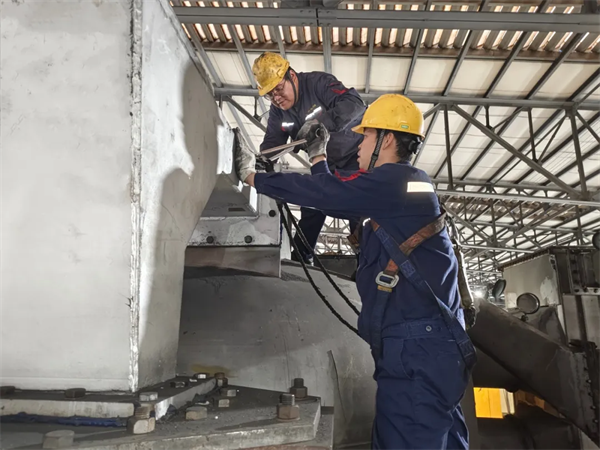 陽極分公司焙燒車間多功能天車工在作業(yè)中發(fā)現(xiàn),2#多功能天車出現(xiàn)吸料緩慢情況,嚴重影響炭塊裝出爐效率。經(jīng)維修人員排查發(fā)現(xiàn),造成吸料緩慢的主要原因是吸料管彎頭由于物料磨損、管壁變薄、存在漏點導(dǎo)致負壓泄漏所致。 為了不影響正常生產(chǎn),車間立即組織召開專題會議討論制定維修方案。由于吸料管彎頭整體鋼板已經(jīng)變薄,通過補焊處理無法從根本上解決負壓泄漏問題,車間決定對吸料管彎頭進行更換。因更換作業(yè)涉及危險作業(yè),車間提前辦理高空作業(yè)及吊裝作業(yè)工作票,對該區(qū)域設(shè)置警戒線,換裝過程維修人員嚴格按照操作規(guī)程進行作業(yè),并由專人指揮吊車,確保作業(yè)全過程人員設(shè)備安全。在各個環(huán)節(jié)的緊密配合下,僅用一上午就完成了2#多功能天車吸料管彎頭更換工作,經(jīng)帶料運行穩(wěn)定后投入正常使用。 此次2#多功能天車吸料管彎頭更換后,吸料時間較更換前減少了50%左右,工作效率大幅提升。下一步,車間將持續(xù)加強設(shè)備點巡檢力度,及時發(fā)現(xiàn)并處理設(shè)備隱患,為分公司安全生產(chǎn)提供穩(wěn)定可靠的設(shè)備保障。 |