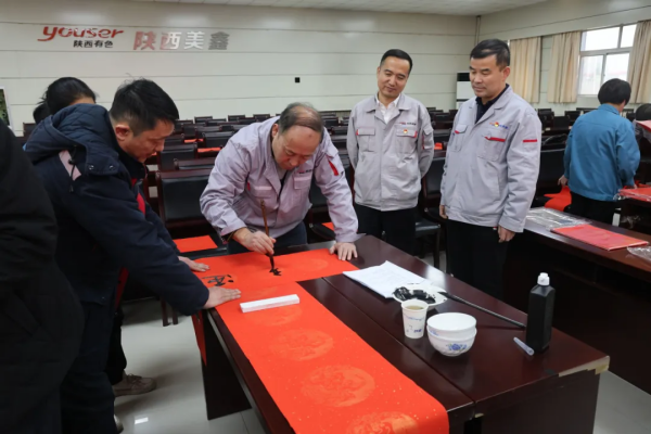 歲末臨近,新春將至。為弘揚(yáng)中華民族傳統(tǒng)文化,豐富職工節(jié)日精神文化生活,營(yíng)造祥和、歡樂(lè)、喜慶的節(jié)日氛圍,1月21日,公司工會(huì)成功舉辦“迎新春·書(shū)春聯(lián)·聚合力”送春聯(lián)活動(dòng),把新年美好的祝福送進(jìn)職工手中。 翰墨飄香,暖意融融。隨著活動(dòng)的進(jìn)行,一張張紅色宣紙慢慢鋪開(kāi)。書(shū)法老師蘸好筆墨、枕腕臨準(zhǔn),揮毫潑墨書(shū)神韻筆,“靈蛇獻(xiàn)瑞春光好 彩鳳呈祥歲月新”“靈蛇起舞迎新歲 玉兔呈祥送福來(lái)”,一幅幅寓意祥瑞的春聯(lián)不僅道出了廣大職工對(duì)美好生活的向往,更是表達(dá)了對(duì)企業(yè)發(fā)展萬(wàn)象更新、蒸蒸日上的美好愿景。翰墨的清香與眾人的歡笑,讓濃濃的年味在空中不斷流淌,向職工傳遞出最美好的祝福和關(guān)愛(ài)。 本次活動(dòng)送出春聯(lián)、福字共800余副,透過(guò)火紅的春聯(lián)和吉祥的福字,讓大家在墨香中感受漸行漸近的濃濃年味,以愉悅的心情和飽滿的熱情迎接新春佳節(jié)、開(kāi)啟奮斗新征程。 |